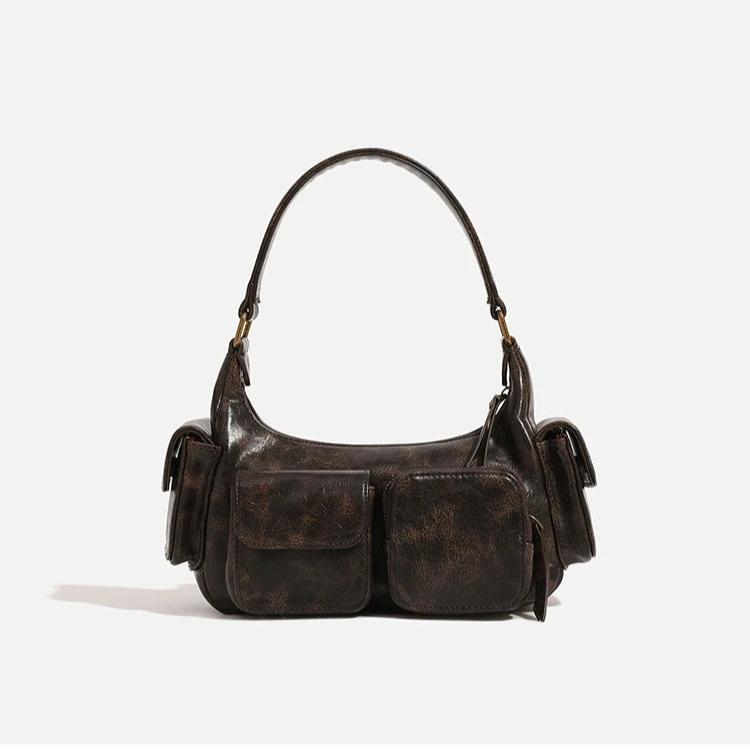 NOREN – Vintage Vegan Leather Multi-Pocket Shoulder Bag