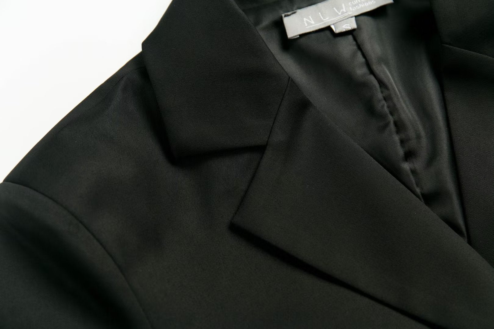 Sharp and effortlessly chic. This cropped wrap blazer combines tailored lines with a waist-accentuating fit, perfect for styling over high-rise trousers or skirts. With structured shoulders, sleek long sleeves and a clean silhouette, it’s your go-to for modern power dressing. Lightweight yet polished—ideal from desk to dinner.