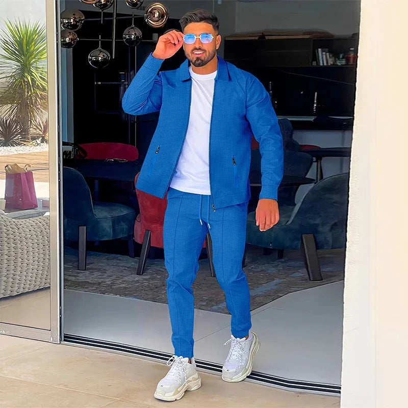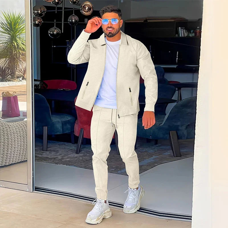 Move in comfort and confidence with this modern two-piece track suit, built for easygoing days and everyday style. With its sleek zip-up jacket, tapered joggers, and soft, breathable fabric, it’s the perfect blend of function and fashion. Whether you're on the go or off duty, this set brings laid-back energy with a polished edge.