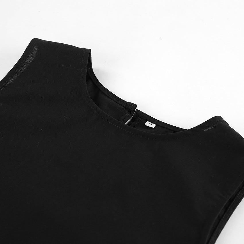 Breathe easy in this minimalist two-piece set crafted from soft, high-quality cotton. The sleeveless crop top hugs your shape with subtle elegance, while the high-waisted wide-leg pants flow effortlessly for an elongated silhouette. Whether you're dressing up or winding down, this look brings fresh sophistication to every moment. A must-have for warm days with a modern, versatile edge.