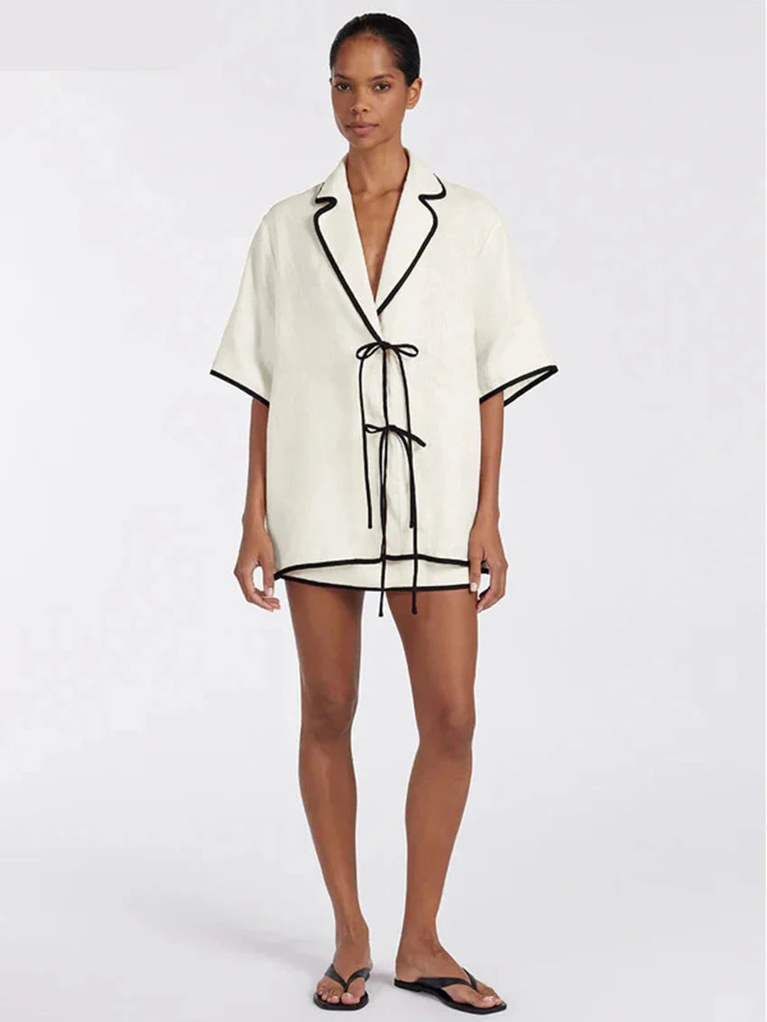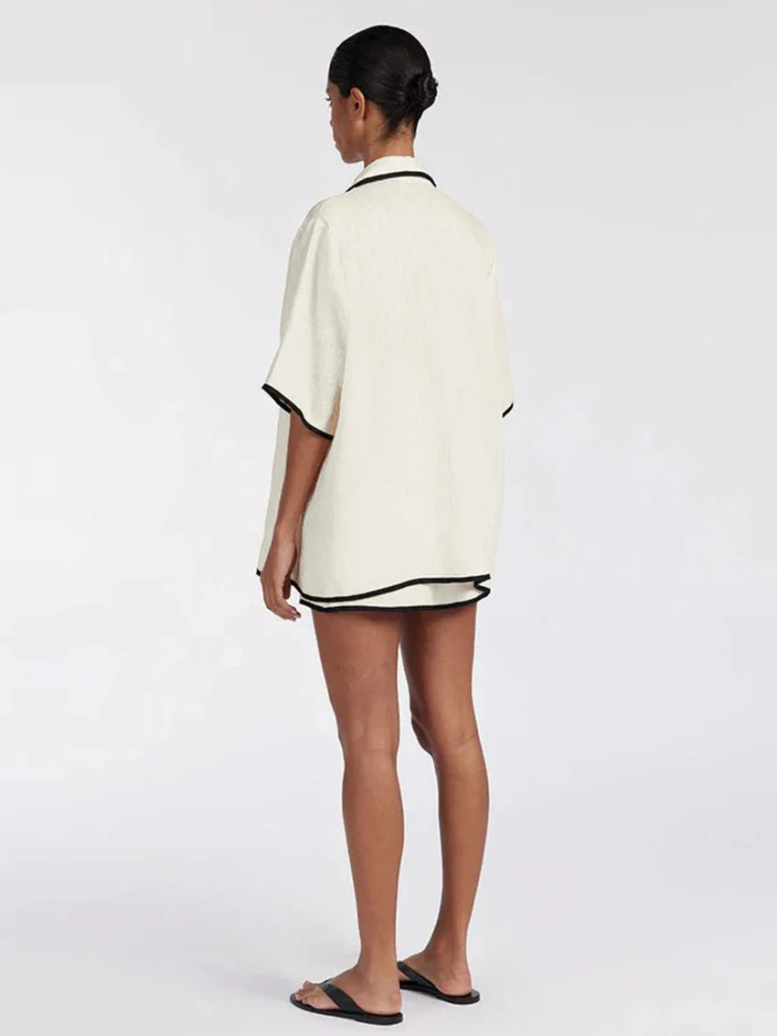 Stay cool and stylish with this effortless cotton two-piece set. Featuring a relaxed half-sleeve shirt and a flattering high-waisted mini skirt, it’s perfect for sunny days out or lounging in comfort. Made from breathable, durable cotton, it blends everyday practicality with timeless appeal. Whether you're heading to brunch or unwinding at home, this set brings casual elegance to every moment.