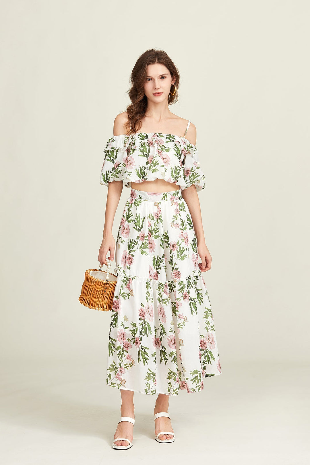 FAYRA – Floral Off-Shoulder Puff Sleeve Two-Piece Set