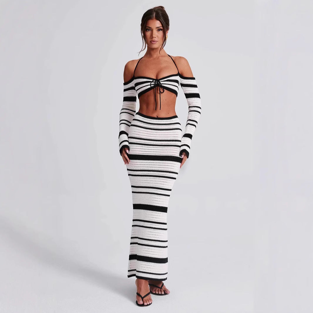 MARTINA - Striped Knit Two-Piece Maxi Skirt Set