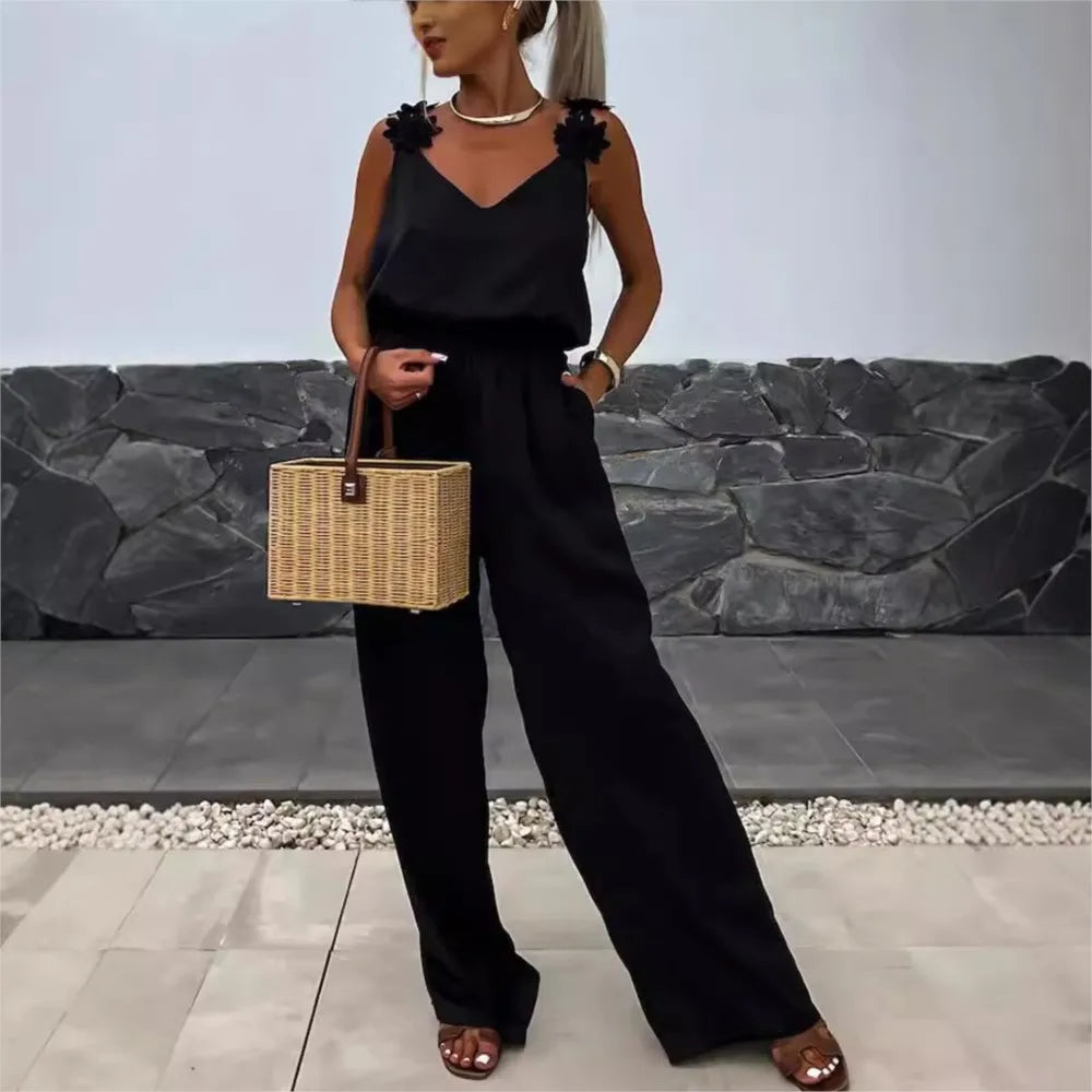Effortless and chic, this sleeveless jumpsuit is your go-to for warm-weather days. Designed with a relaxed fit and flattering waist detail, it combines elegance with all-day comfort. The lightweight fabric flows beautifully, making it ideal for vacations, brunches, or everyday wear. Whether you're dressing up with heels or staying casual with sandals, this versatile piece adds a stylish edge to any wardrobe. A must-have for modern women who value ease without compromising on fashion.