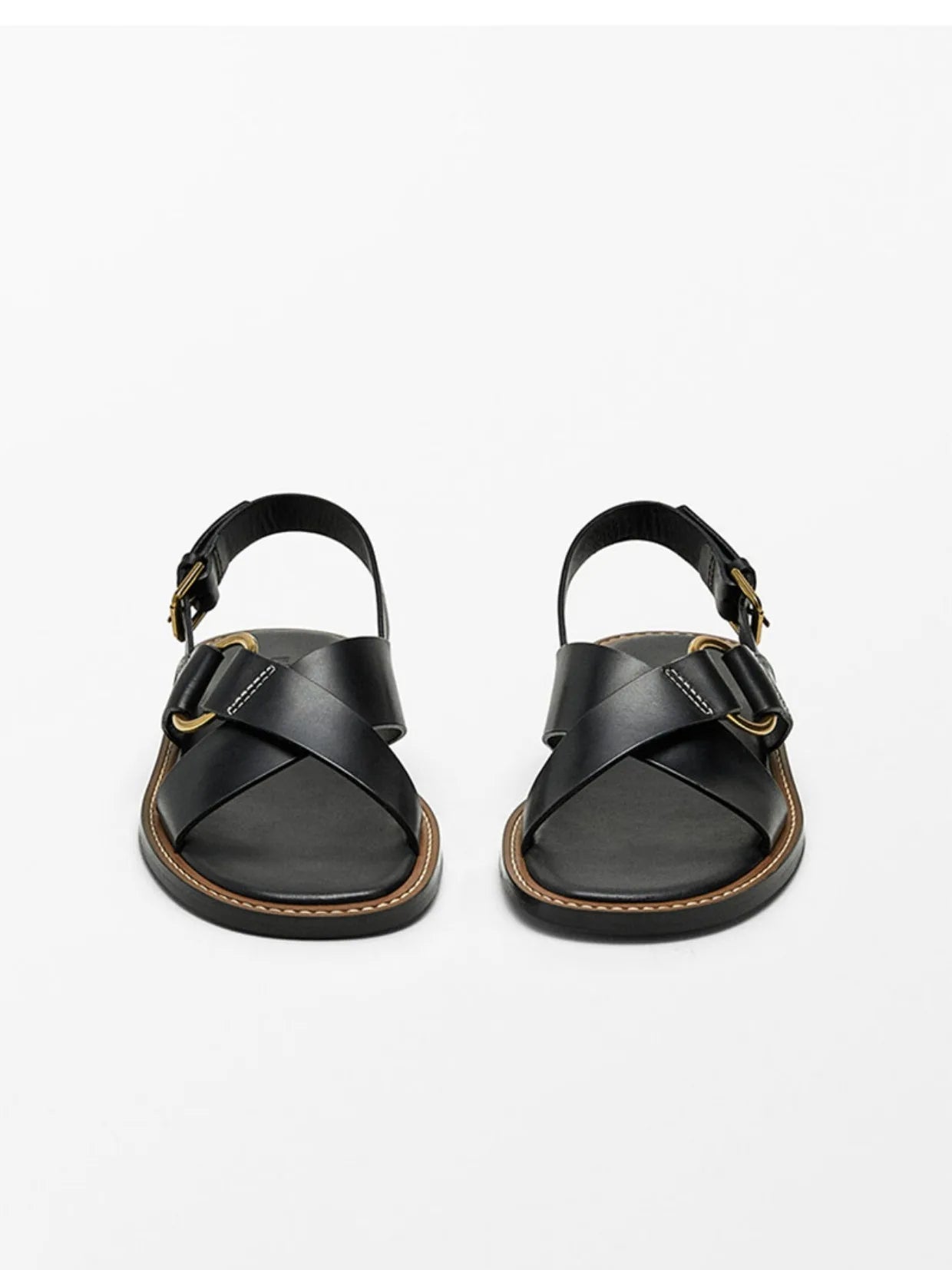 LUPPE - Leather Sandals with Gold Buckle Straps – Cugo Apparel