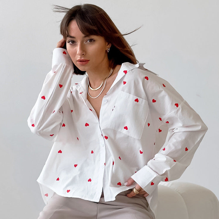 MASIM – Heart Pattern Blouse with Button Front