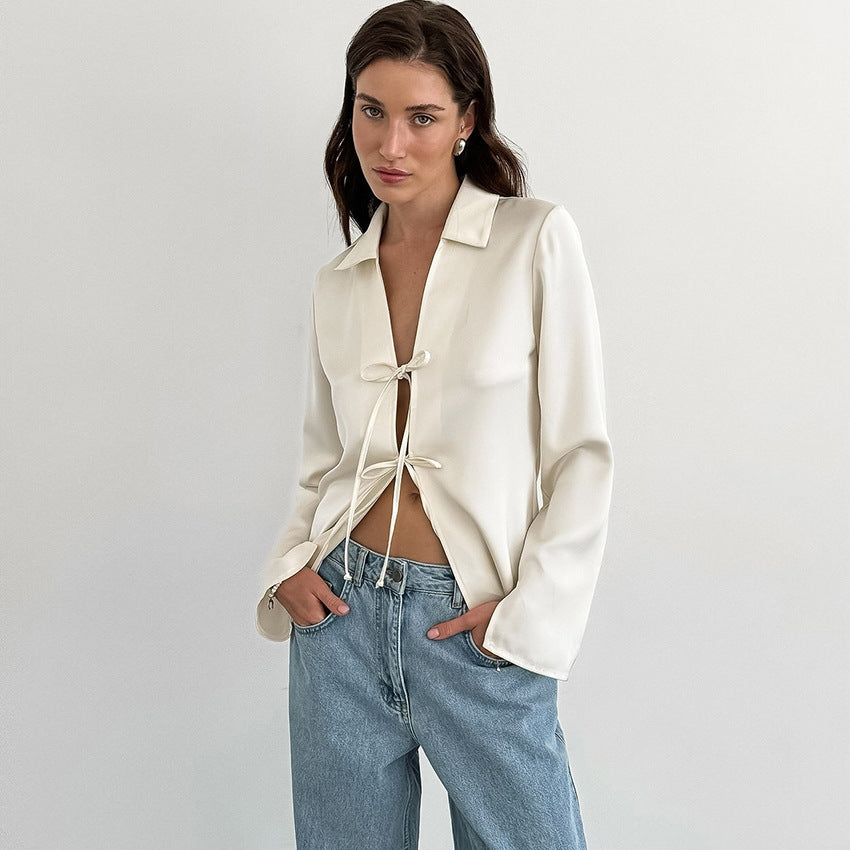 ELINA – White Tie-Front Blouse