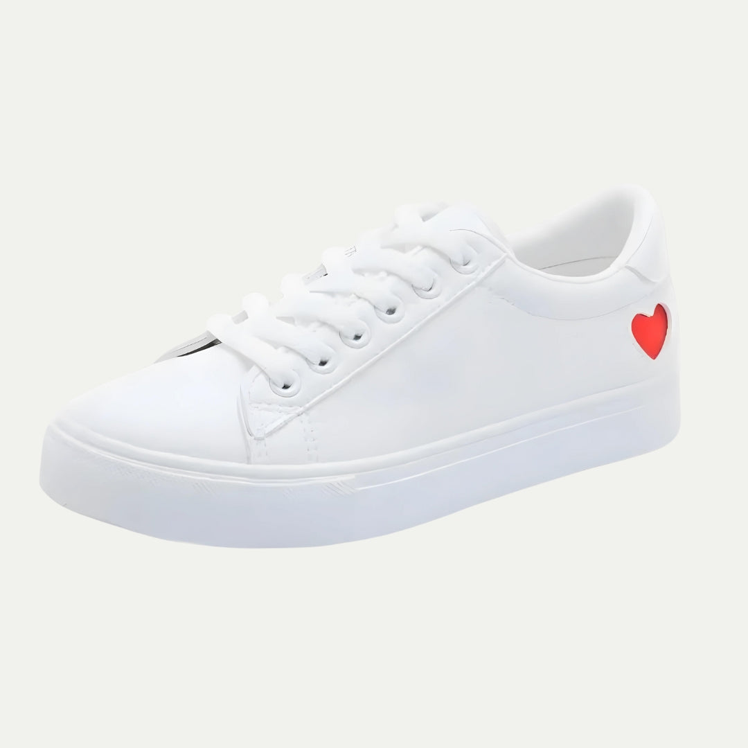 CUPIDO - Women's White Low-Top Sneakers with Heart Detail