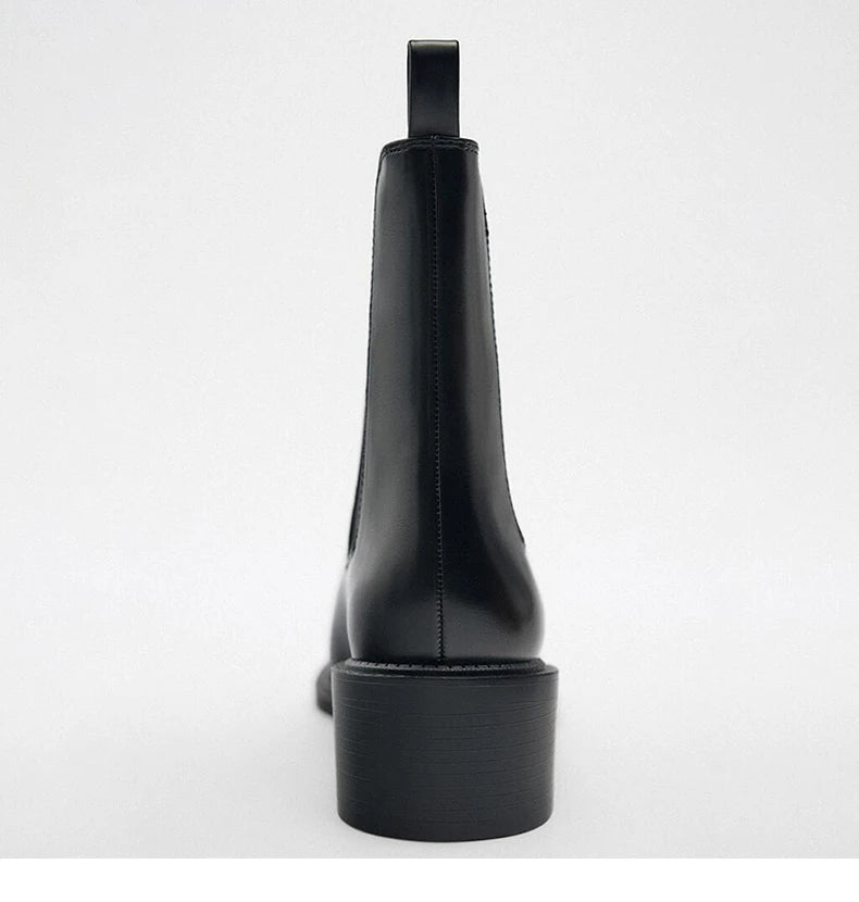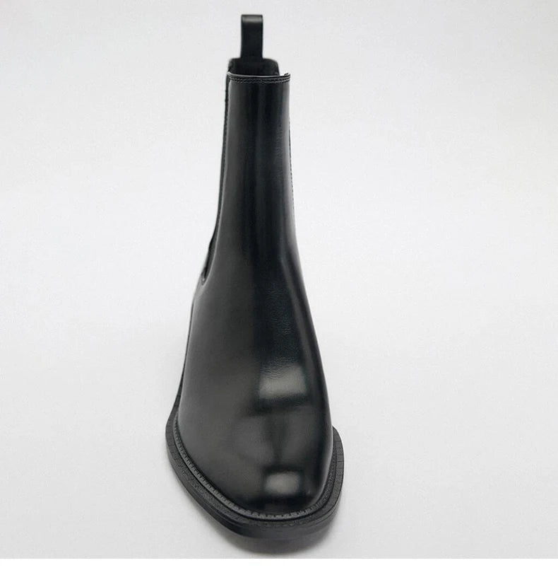 These leather Chelsea boots feature a sleek, minimalist design with a smooth finish and comfortable block heel. Elastic side panels allow easy slip-on wear, while the classic silhouette suits both casual and formal outfits. Whether styled with jeans, dresses, or tailored looks, these ankle boots provide versatility and timeless appeal. A refined addition to any wardrobe.
