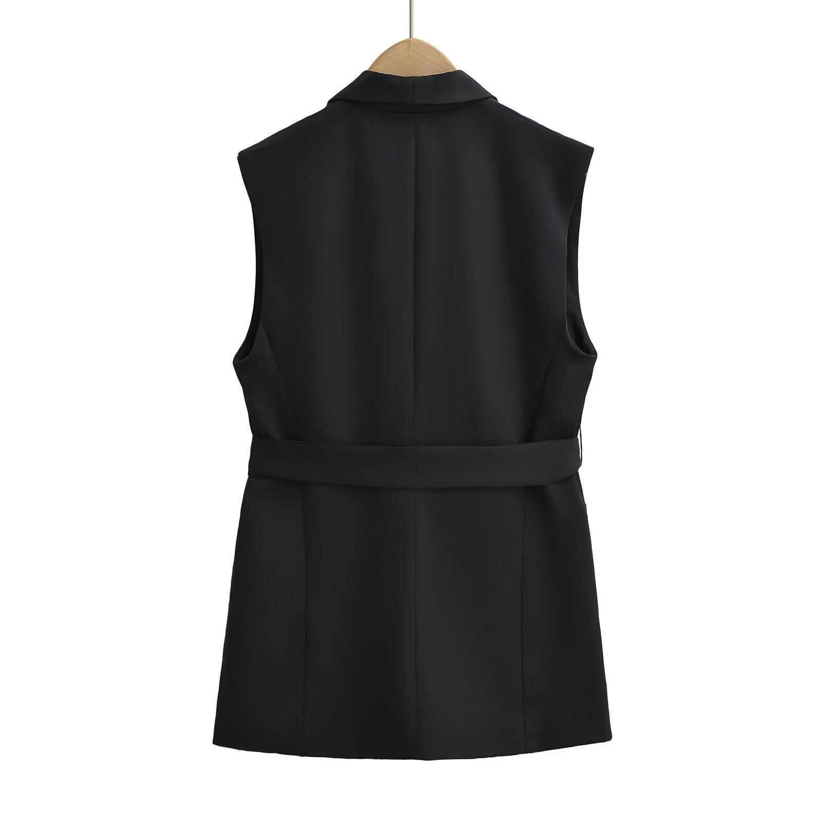 JOYCE – Sleeveless Black Belted Vest – Cugo Apparel